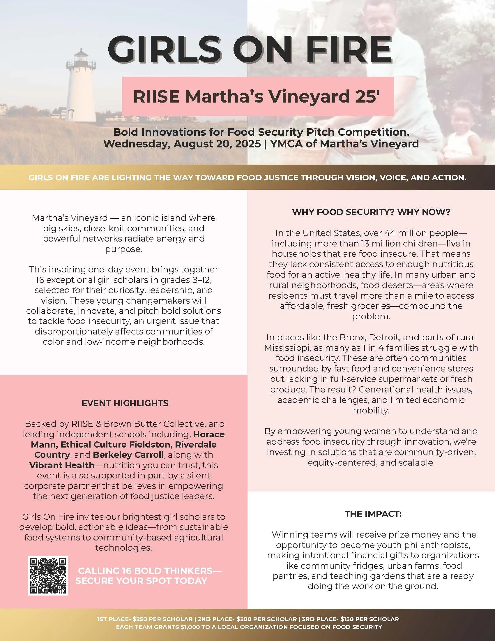 Girls On Fire: Martha’s Vineyard Bold Innovations for Food Security Pitch Competition. Wednesday, August 20, 2025 10:30 AM 5:00 PM Google Calendar ICS Complete Application Watch Now